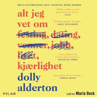 Å bli voksen i medgang og motgang - det er noe Dolly Alderton vet alt om. Selv kom hun seg bare så vidt gjennom tyveårene med sine altfor mange nachspiel og en endeløs rekke med dårlige dater, kjærlighetssorg og ydmykelser. Uten en venninnegjeng som aldri ga hverandre opp hadde det sett enda verre ut. I denne boken får du være med på den humpete reisen. Alt jeg vet om kjærlighet rommer store mengder hjerte og humor - og litt mørke. Akkurat som livet. Dolly Aldertons hysteriske selvbiografi er blitt kalt alt fra 'Sex and the city for milleniumsgenerasjonen' til 'virkelighetens Bridget Jones'. Dette er boken du skal lese selv og deretter gi til alle som noen gang har vært i Dollys sko og strevd med å finne ut av alt sammen eller som er i ferd med å trå ut i voksenlivet og trenger en å holde i hånden på veien.